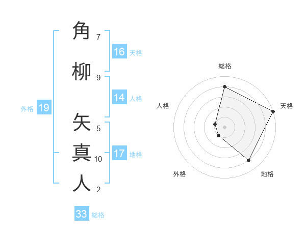 角柳 矢真人さんを姓名の画数から五運を鑑定