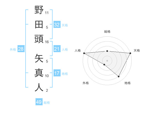 野田頭 矢真人さんの総格は49画の2点!