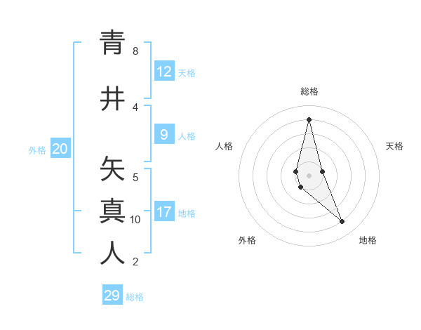 青井 矢真人さんの総格は29画の4点!