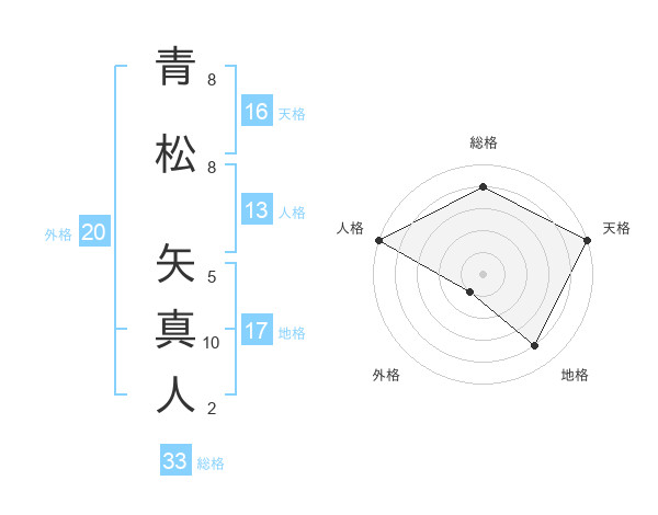青松 矢真人さんを姓名の画数から五運を鑑定