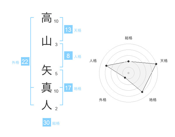 高山 矢真人さんを姓名の画数から五運を鑑定