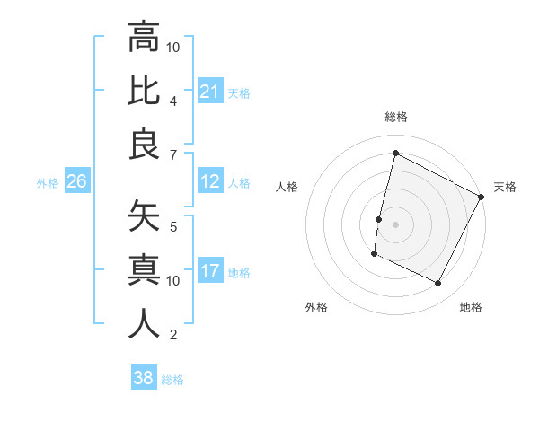高比良 矢真人さんの天格は21画の5点!
