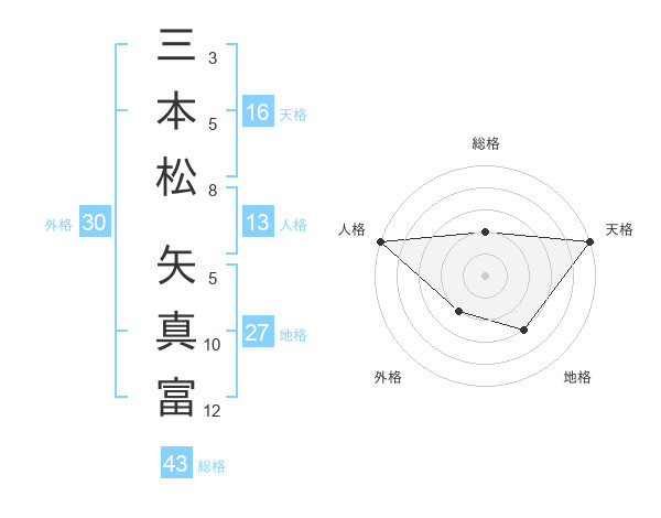 三本松 矢真富さんの総格は43画の2点!