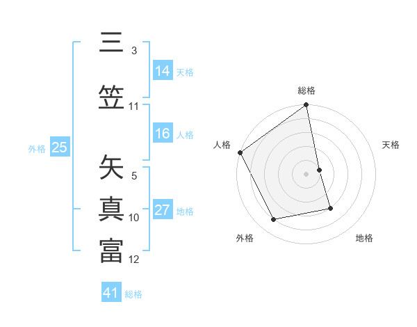 三笠 矢真富さんを姓名の画数から五運を鑑定