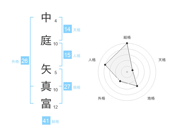 中庭 矢真富さんの総格は41画の5点!