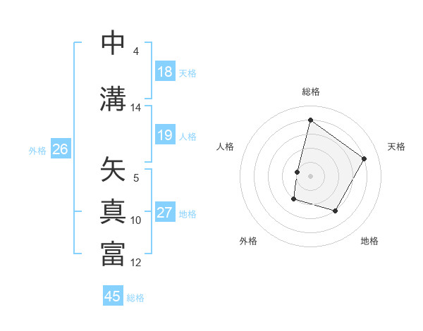 中溝 矢真富さんの総格は45画の4点!