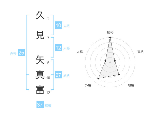 久見 矢真富さんの総格は37画の5点!