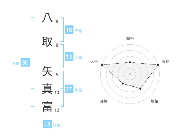 八取 矢真富さんの総格は43画の2点!