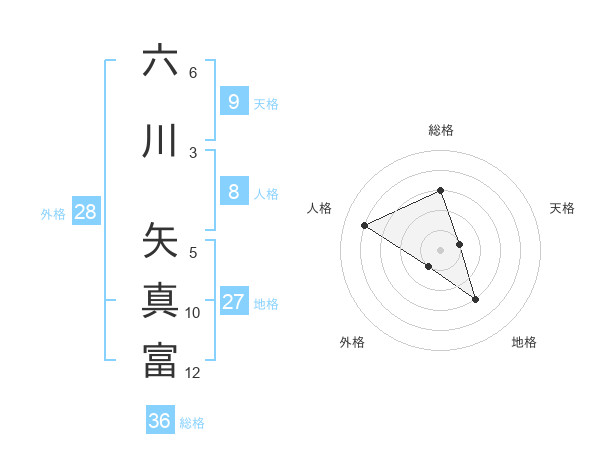 六川 矢真富さんの総格は36画の3点!