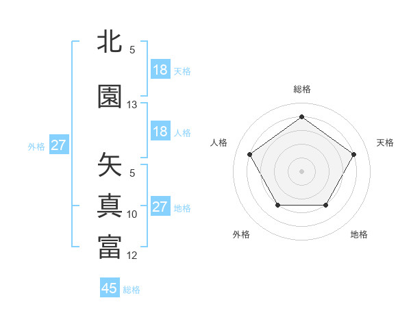 北園 矢真富さんを姓名の画数から五運を鑑定