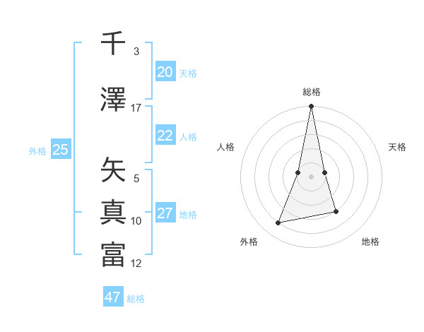 千澤 矢真富さんを姓名の画数から五運を鑑定