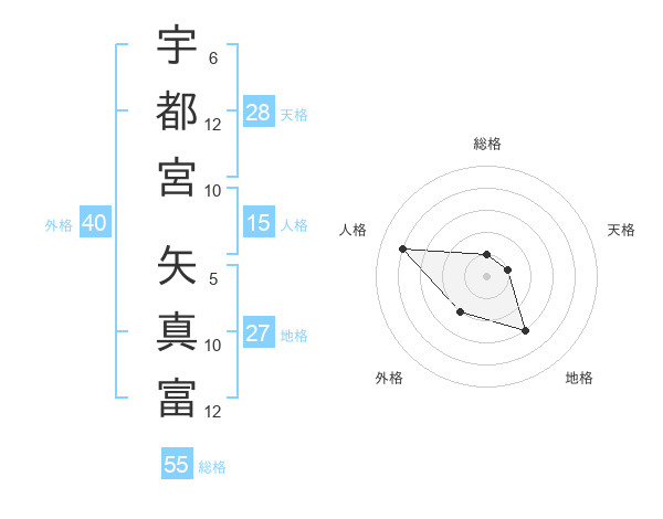宇都宮 矢真富さんを姓名の画数から五運を鑑定
