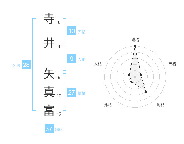 寺井 矢真富さんの総格は37画の5点!