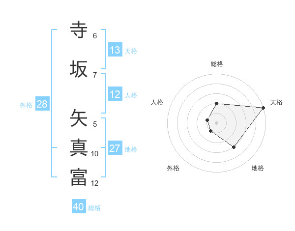 寺坂 矢真富さんを姓名の画数から五運を鑑定