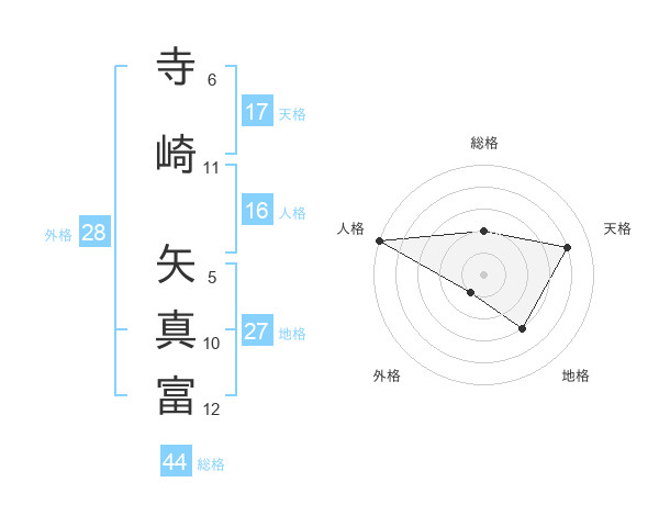 寺崎 矢真富さんの天格は17画の4点!