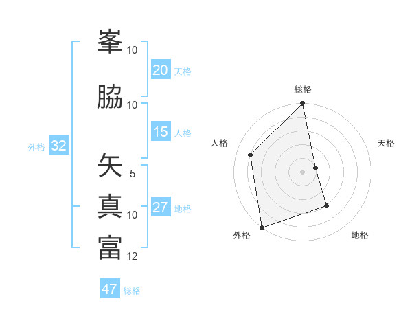 峯脇 矢真富さんを姓名の画数から五運を鑑定