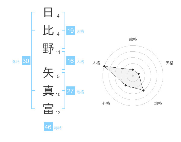 日比野 矢真富さんを姓名の画数から五運を鑑定