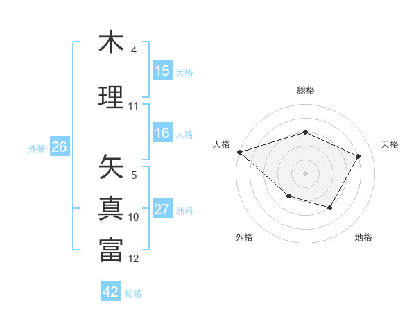木理 矢真富さんを姓名の画数から五運を鑑定