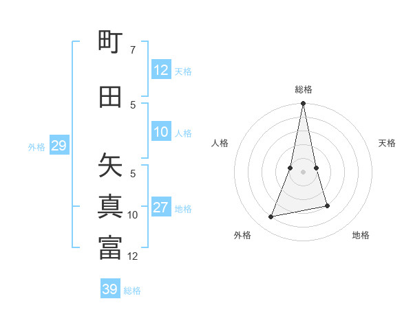 町田 矢真富さんを姓名の画数から五運を鑑定