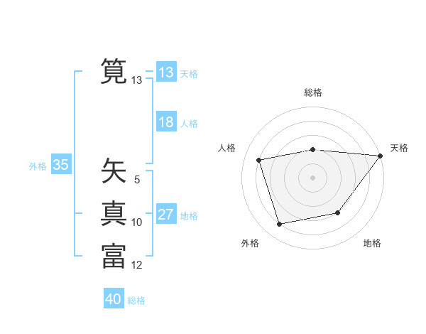 筧 矢真富さんの外格は35画の4点!