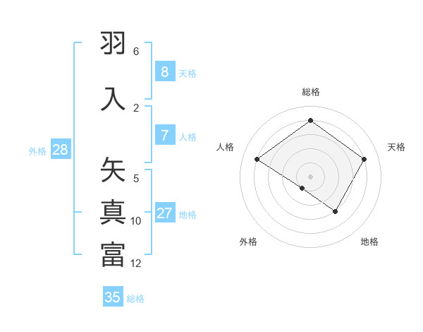 羽入 矢真富さんを姓名の画数から五運を鑑定