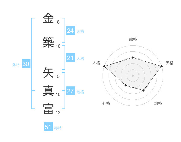 金築 矢真富さんを姓名の画数から五運を鑑定