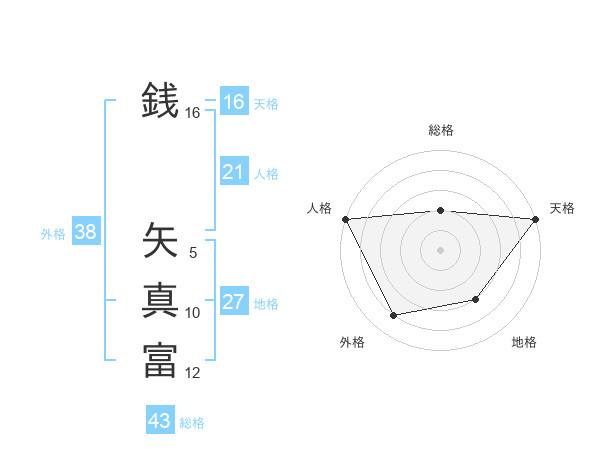 銭 矢真富さんを姓名の画数から五運を鑑定