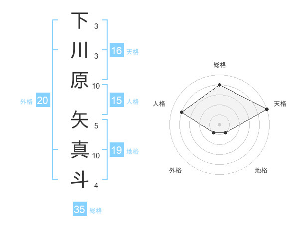 下川原 矢真斗さんを姓名の画数から五運を鑑定
