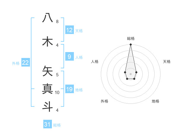 八木 矢真斗さんの総格は31画の5点!