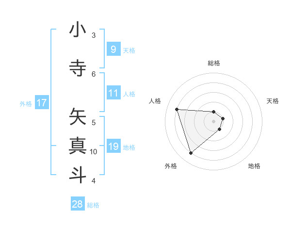 小寺 矢真斗さんの総格は28画の1点!