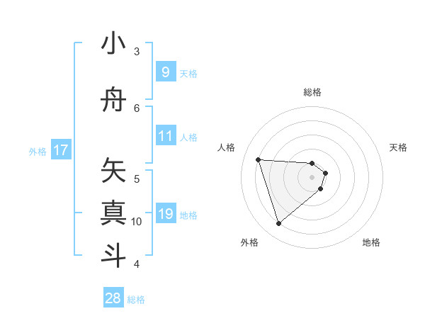 小舟 矢真斗さんを姓名の画数から五運を鑑定
