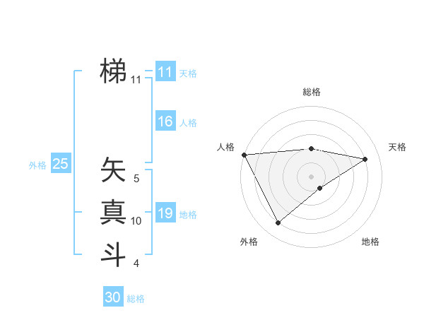 梯 矢真斗さんの外格は25画の4点!