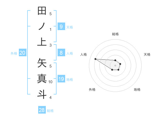 田ノ上 矢真斗さんを姓名の画数から五運を鑑定