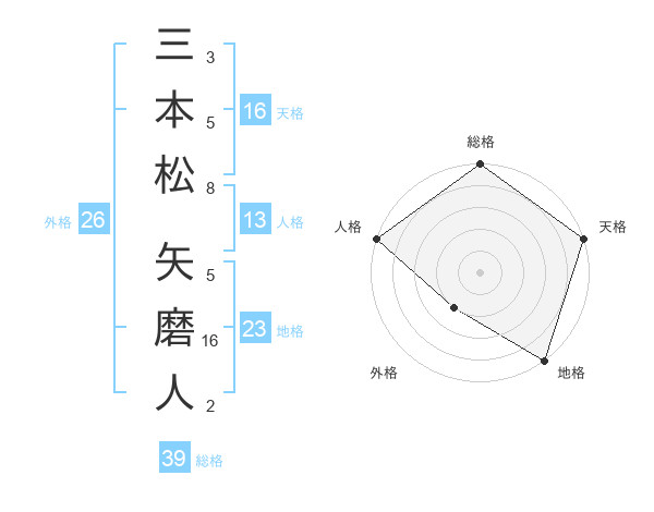 三本松 矢磨人さんの総格は39画の5点!