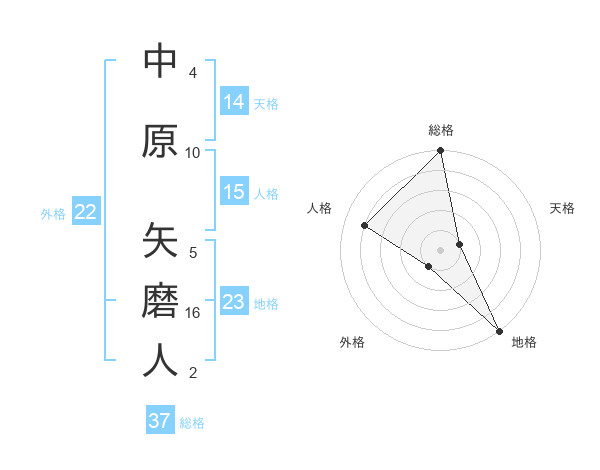 中原 矢磨人さんを姓名の画数から五運を鑑定