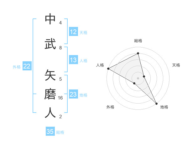 中武 矢磨人さんの総格は35画の4点!