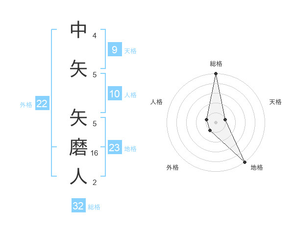 中矢 矢磨人さんの総格は32画の5点!