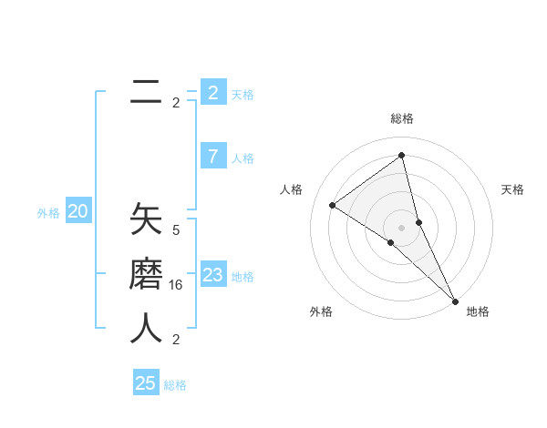 二 矢磨人さんの総格は25画の4点!
