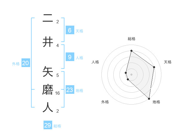 二井 矢磨人さんを姓名の画数から五運を鑑定
