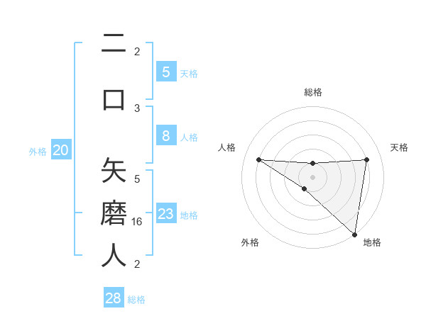 二口 矢磨人さんを姓名の画数から五運を鑑定
