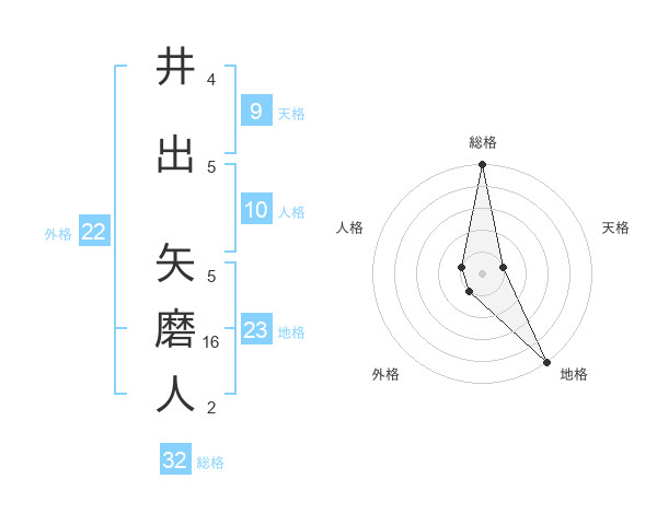 井出 矢磨人さんの総格は32画の5点!