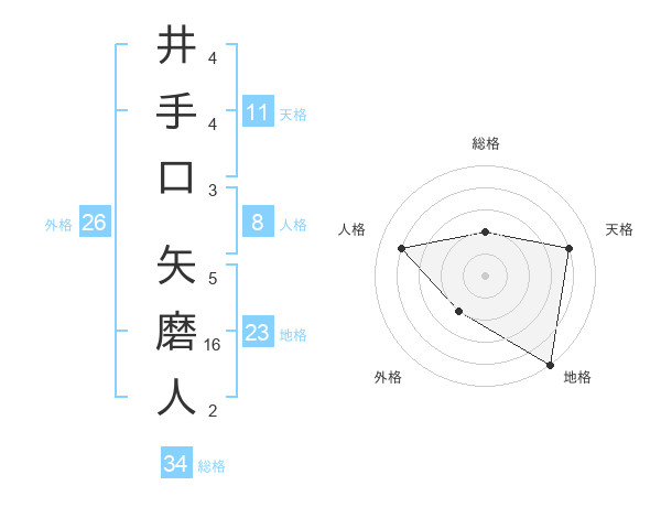 井手口 矢磨人さんの総格は34画の2点!