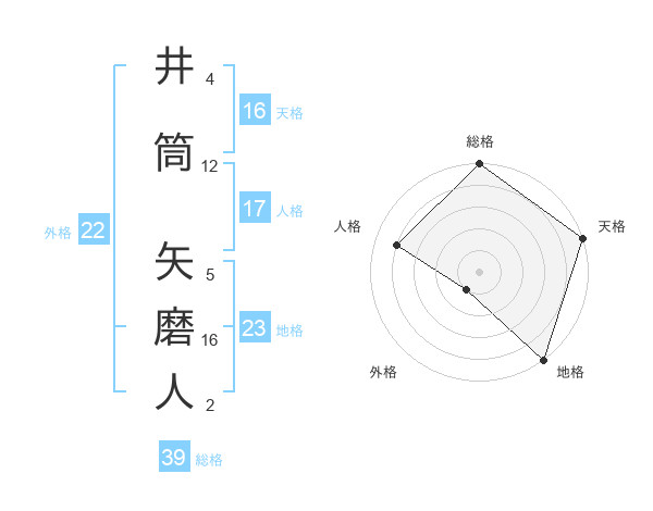 井筒 矢磨人さんの総格は39画の5点!