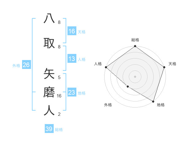八取 矢磨人さんの総格は39画の5点!