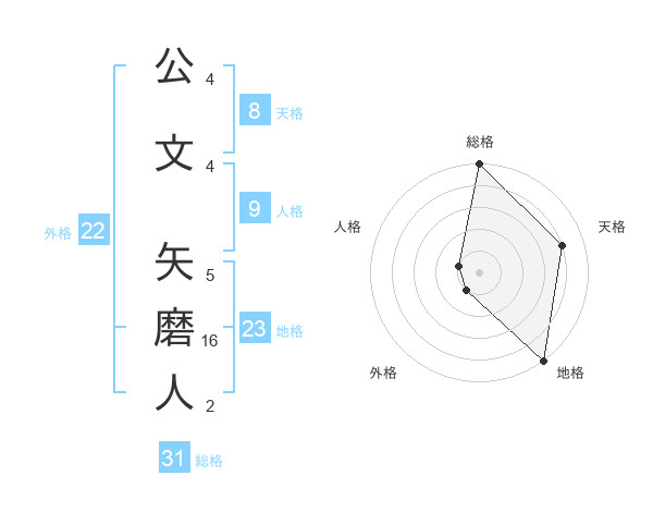 公文 矢磨人さんを姓名の画数から五運を鑑定