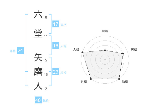 六堂 矢磨人さんの外格は24画の5点!