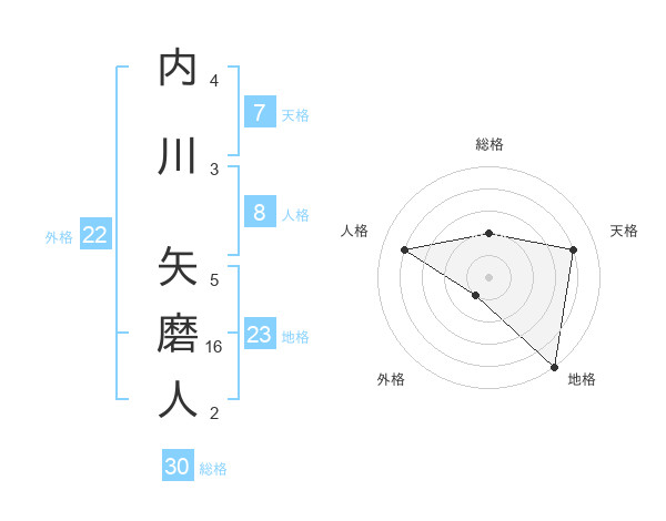 内川 矢磨人さんの総格は30画の2点!