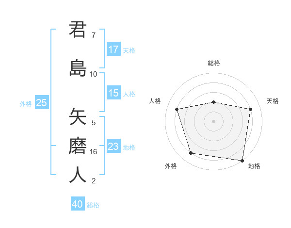 君島 矢磨人さんの天格は17画の4点!