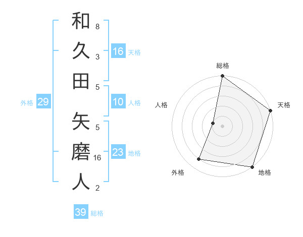 和久田 矢磨人さんを姓名の画数から五運を鑑定