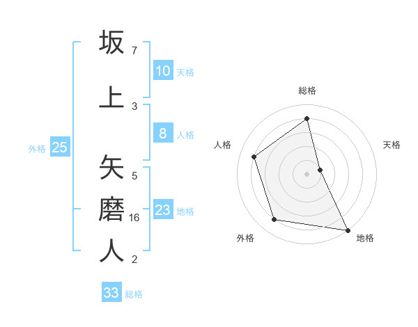 坂上 矢磨人さんを姓名の画数から五運を鑑定